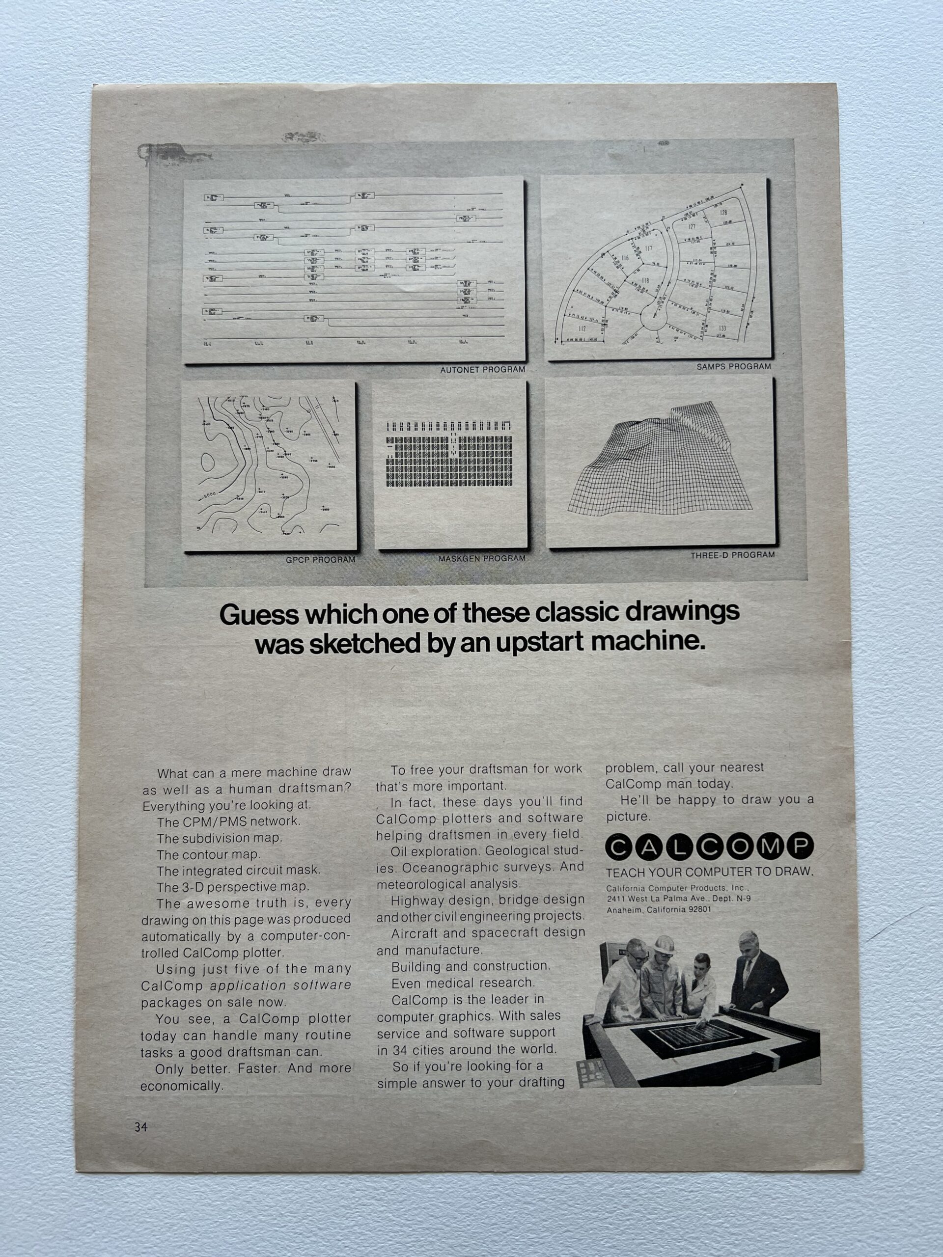 Calcomp Print Advertisement (Architecture) Basic Information Title:Calcomp Print Advertisement (Architecture)Publisher:CALCOMPCategory:AdvertisementSize:11.5" x 8.25"Edition:1Page Count:1Number of copies:1Inventory #:10709