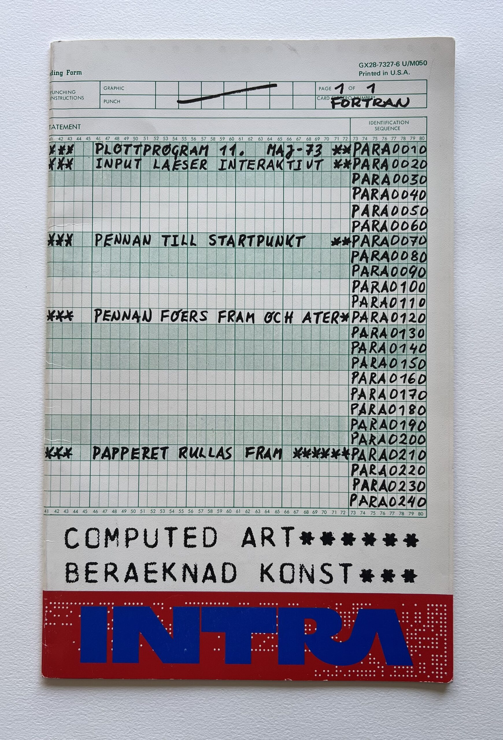 Computed Art/Beraeknad Konst, an art book published in 1974, documents the creative collaboration between the Swedish artist Sture Johannesson and Sten Kallin, a Swedish systems engineer who worked at IBM. Such collaborations across culture and industry were central to the early development of computer art.