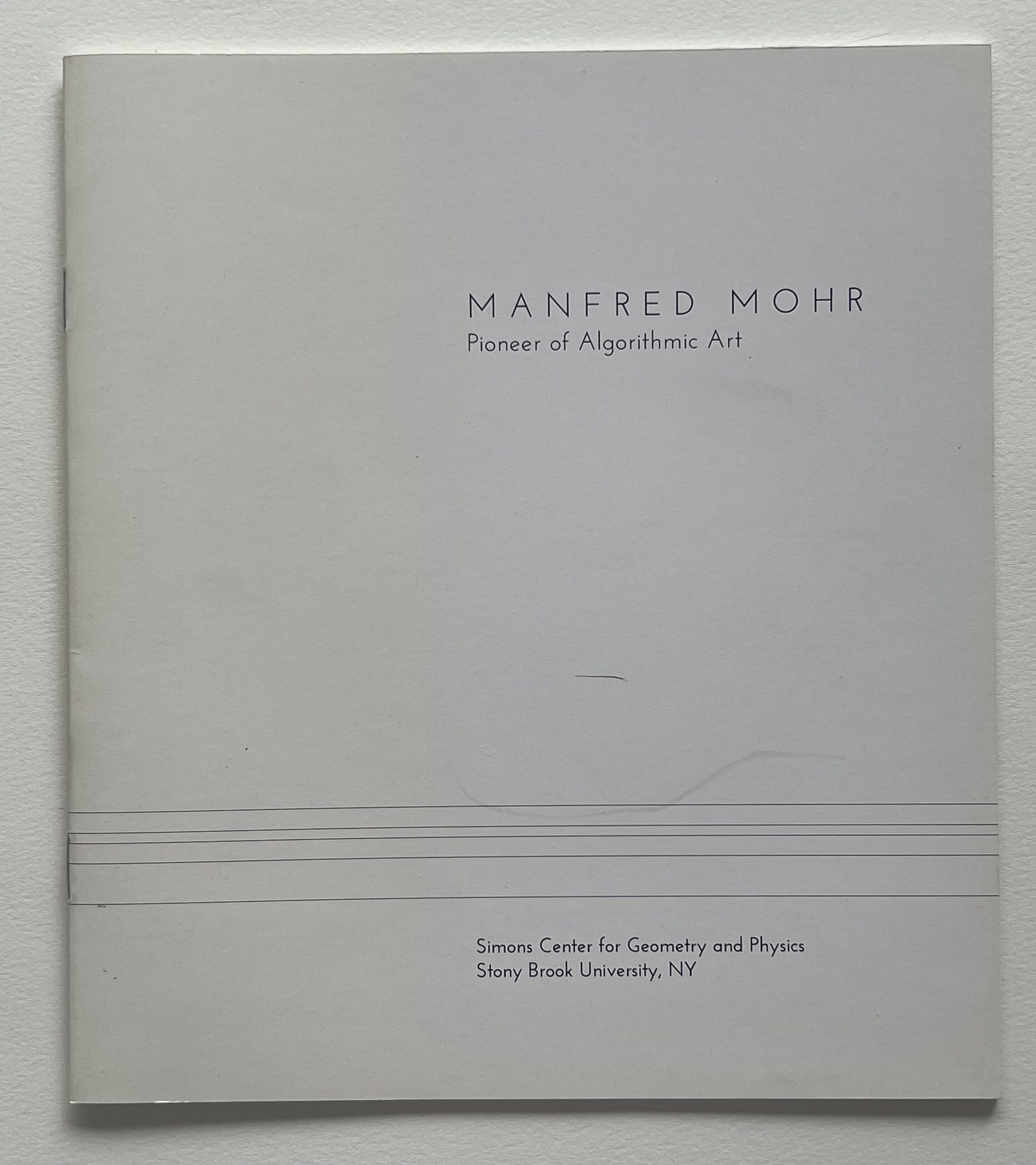 The Simons Center Gallery is pleased to present a solo exhibition of work by Manfred Mohr, an internationally acclaimed pioneer of digital art. After discovering Prof. Max Bense’s information aesthetics in the early 1960’s, Mohr’s artistic thinking was radically changed. Within a few years his art transformed from abstract expressionism to computer generated algorithmic geometry. Further encouraged by discussions with the computer music composer Pierre Barbaud whom he met in 1967, Mohr programmed his first computer drawings in 1969. Since then all his artwork is produced exclusively with the computer. Mohr develops and writes algorithms for his visual ideas. He generates 2-D semiotic graphic constructs using multidimensional hypercubes.